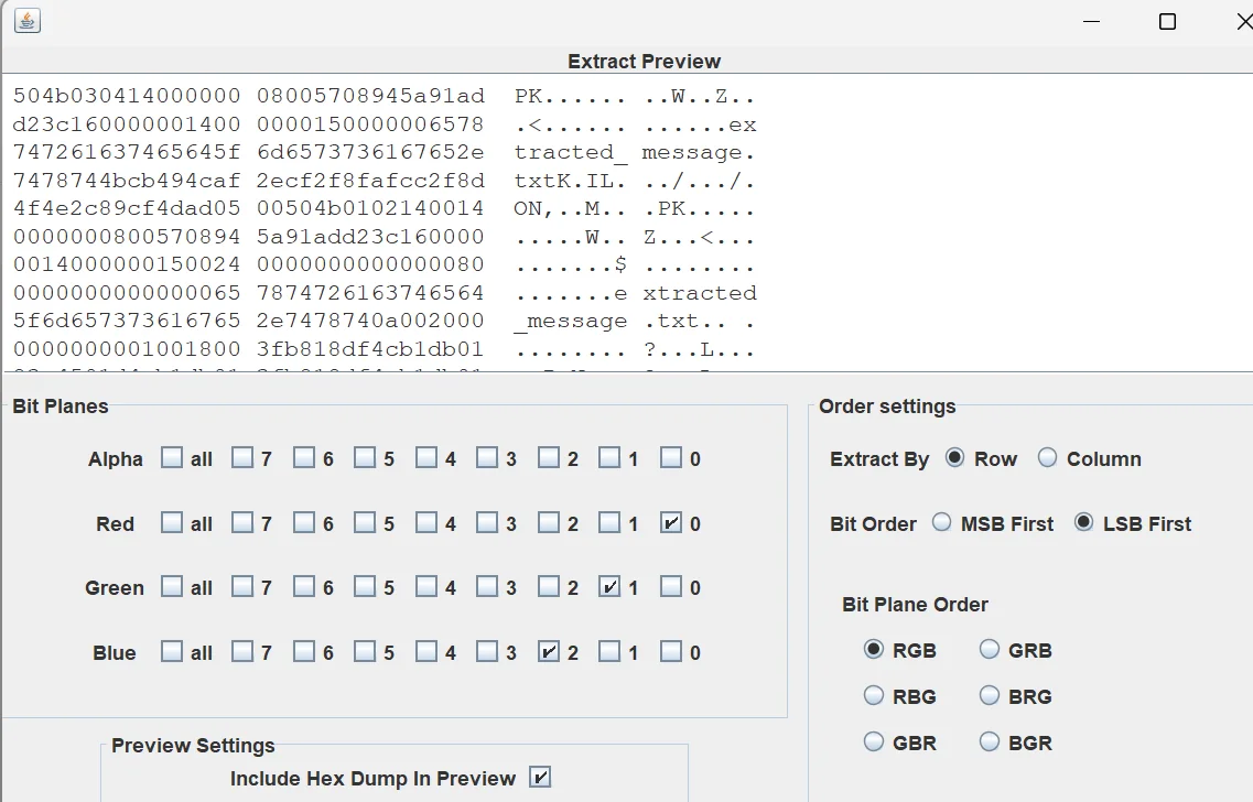message, combo = extract_message_from_combination(pixels, height, width, channel_bit_pairs, string_markers, regex_markers, binary_mode=False)