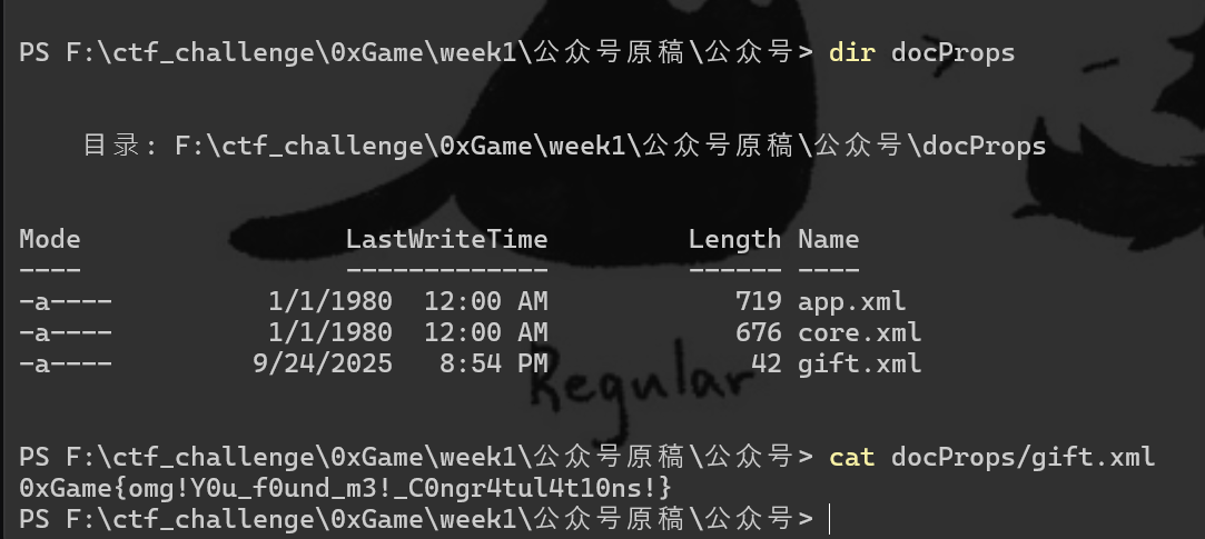 关于约定格式上的细节,大家可以自己研究下,只需要知道,下次遇到这类题后,可以尝试将后缀名改成zip,解压看看有没有什么特殊的文件在里面