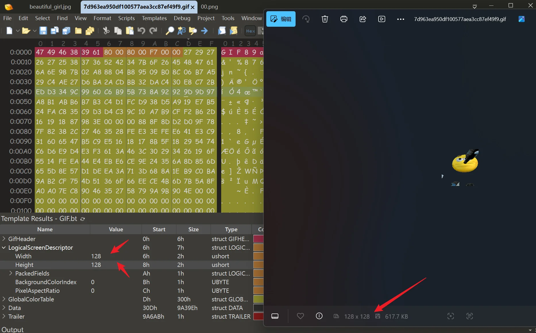 - 用010查看LogicalScreenDescriptor,下面的Width和Height控制的就是宽高