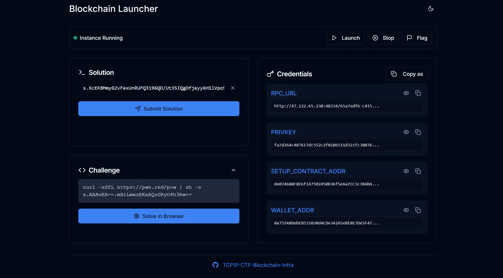 第三个是水龙头,我们需要通过出题人提供的水龙头获取部分测试币,合约部署还有交易等,都需要gas费用,但是本题不太一样,会提供一个私钥,题目会自动给这个私钥的账户上充1eth,足够后面的部署等费用了